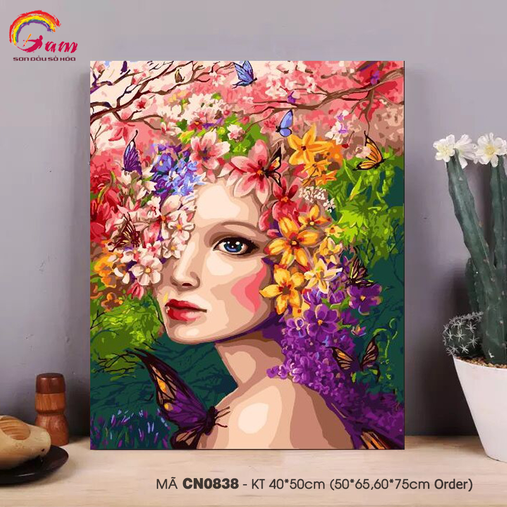 Tranh tô màu theo số sơn dầu số hóa CN0838 Con người và thiên nhiên Cô gái hoa