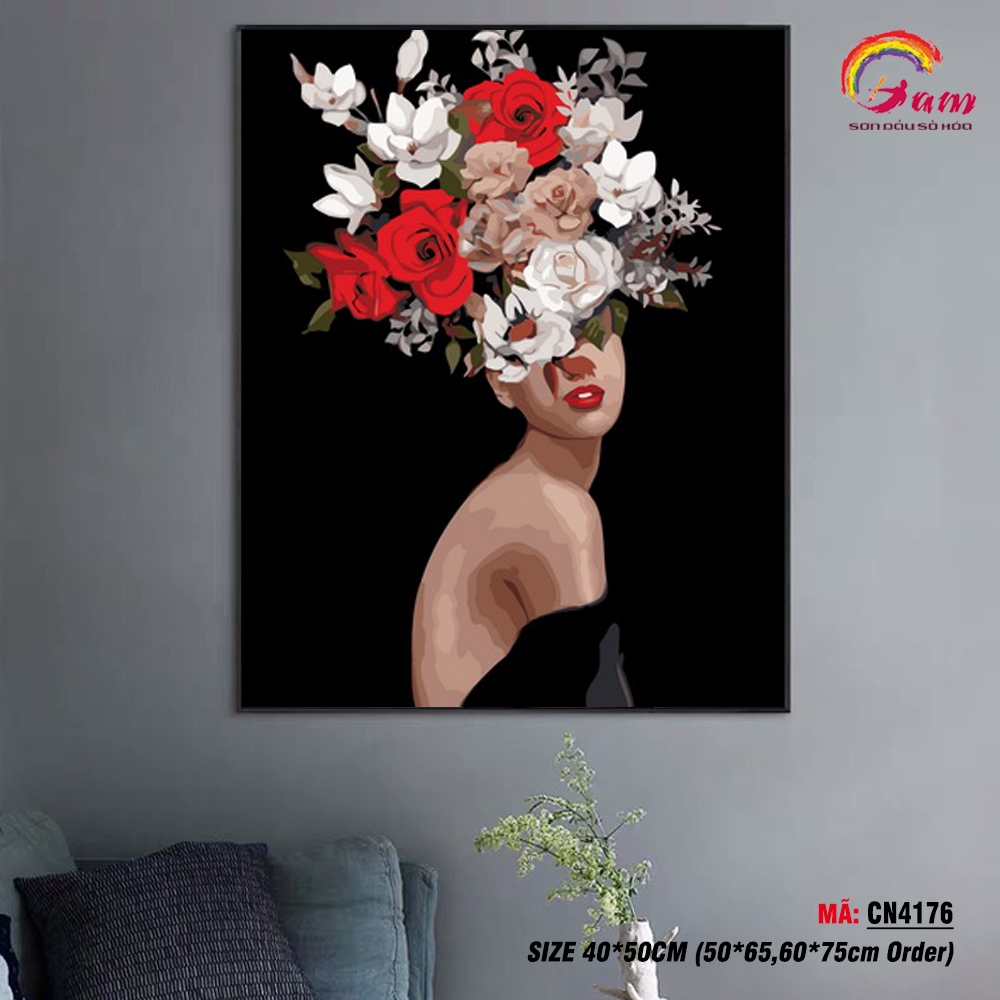 Tranh tô màu theo số Gam cô gái hoa CN4176