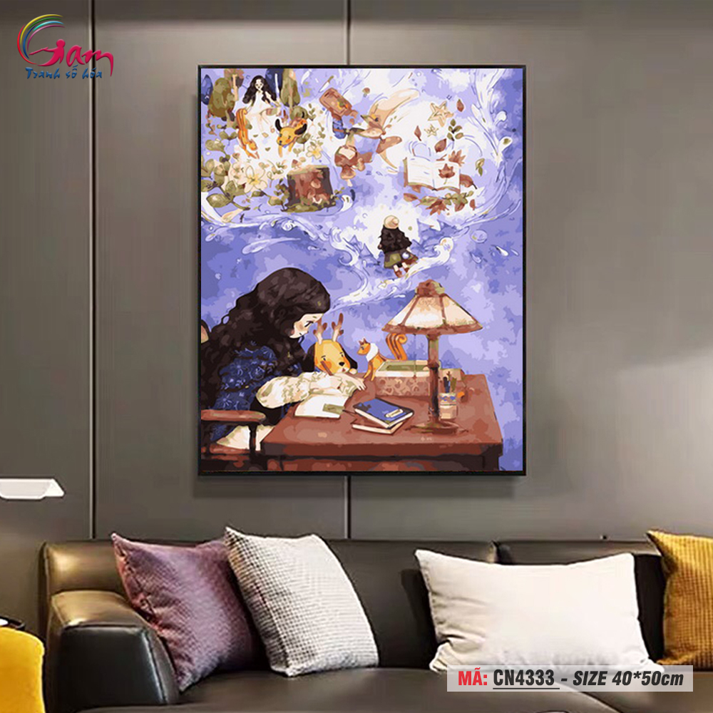 Tranh tô màu theo số Gam cô gái học bài CN4333