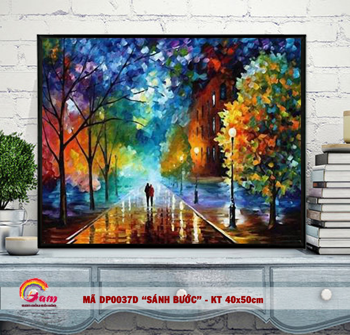 Tranh tự tô màu DIY sơn dầu số hóa về tình yêu - Mã DP0037D Sánh bước bên nhau