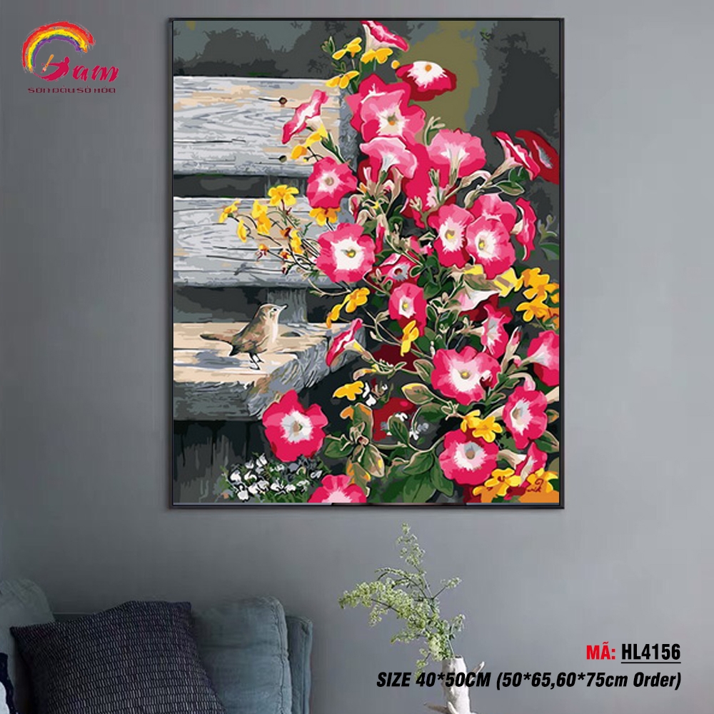 Tranh tô màu theo số Gam chú chim và cành hoa HL4156